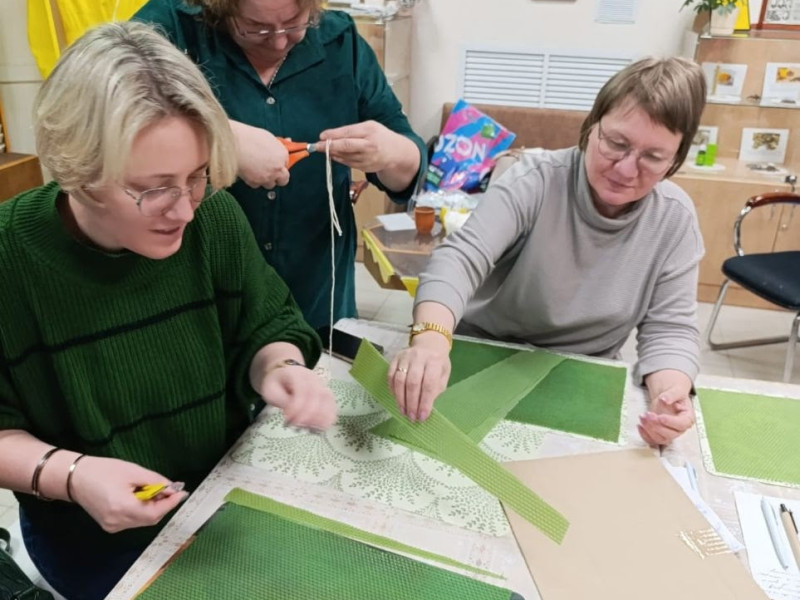 Под руководством нашего мастера каждый создавал свою неповторимую свечу из душистой медовой вощины.Мы катали мвечи-ёлочки, в которые, как в сосуд, закладывали свою добрую энергию и радость. Главной идеей было— сделать уникальный подарок ручной работы для самых близких. Одна из наших мастериц с особым теплом делала сразу две свечки — для своих двойняшек.